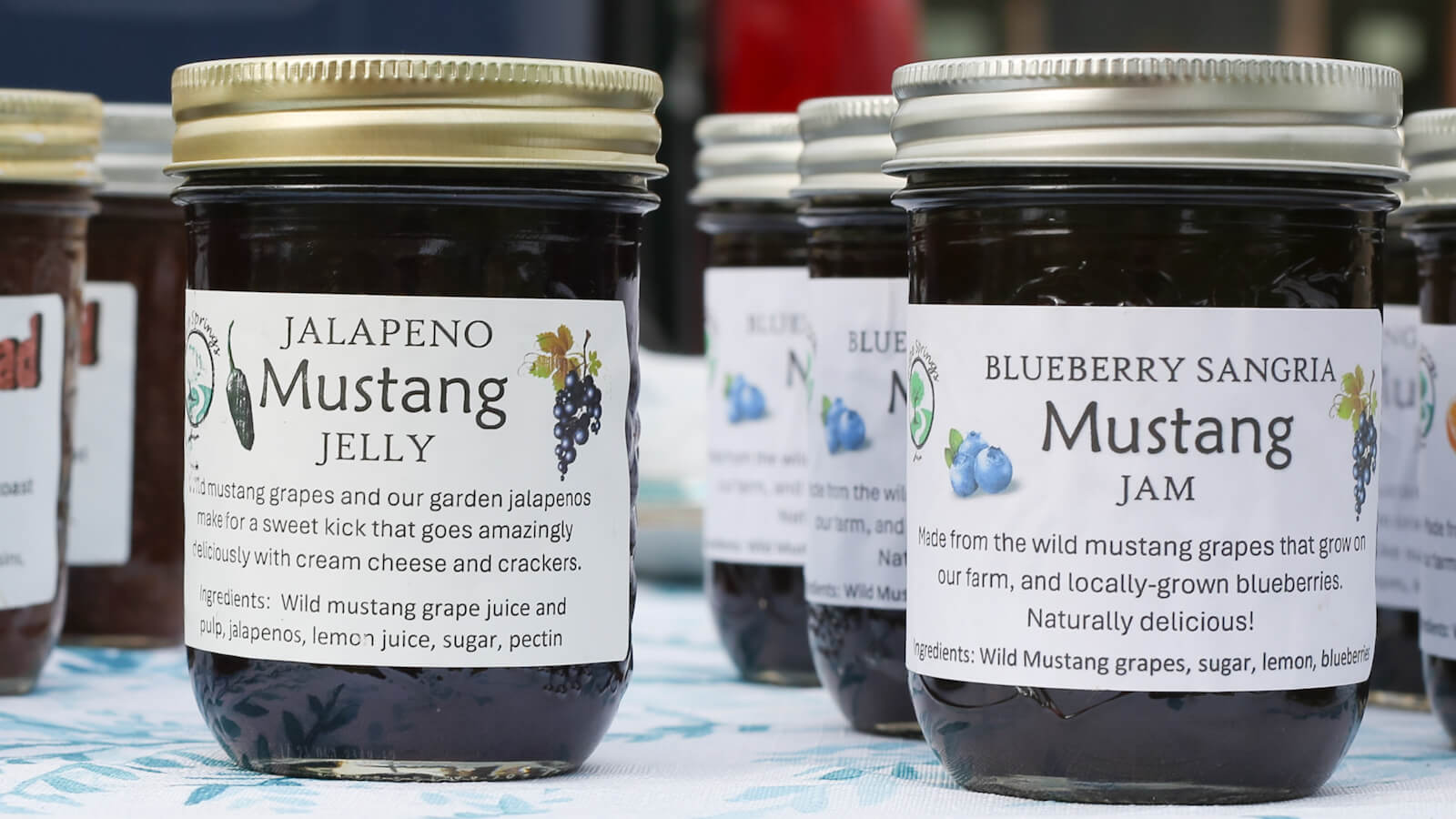 Our best seller is mustang grape jam - the grapes naturally grow on our farm, and we make it in several fun flavor combinations.